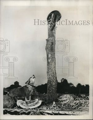 1948 Press Photo Georgia a raccoon treed by a dog on a tree stump