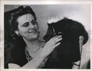 1946 Press Photo Agnes Dexter With Skunk That Was Used in Magic Career