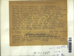 Spies Hiriberto Schlosser and Manuel Demiguel Arraztia were picked up in Federal Police Espionage roundup in Buenos Aires Argentina