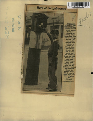 1933 Press Photo Anthony Longo Hero of Neighborhood pulls fire box alarm