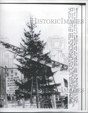 1961 Press Photo The installation of giant Christmas tree in West Berlin