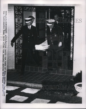 1956 Press Photo Cinncinati Ohio Police & body of Mrs Audrey Pugh, stab victim
