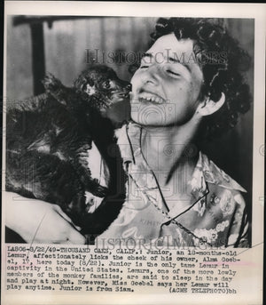 1949 Media Photo Junior, 18-month-old Lemur, Owner Alma Goebel, 17