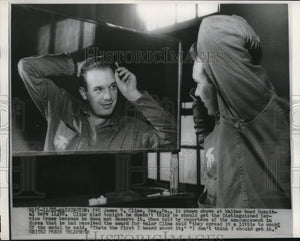 Private First Class James V. Cline, Rea, Pennsylvania, is shown at Walter Reed Hospital. Cline said he doesn't think he should get the Distinguished Service Cross because he does not deserve it.