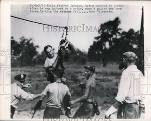 1949 Media Photo Fred Johnson being lowered by girder after he was injured