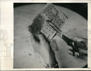 1945 Media Photo Madame Georgette clips coupons from the official ration bank