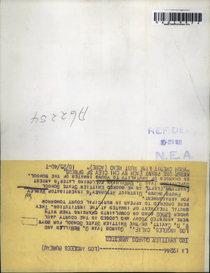 Whittier State School Supervisor Ivan D. McMillan being booked by District Attorney's Investigator Wesley Engstrom following charges of brutality to young inmates of the school in California.