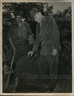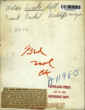 1950 Press Photo Waldo Drake and Frank Fickel Wickliffe Mayor inspect