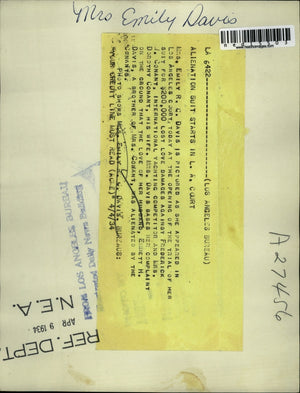 1934 Press Photo Mrs Emily Davis appeared in Los Angeles Curt at opening