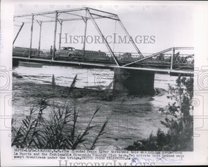 1954 Press Photo The Flooded Pecos River Threatens This Old Bridge