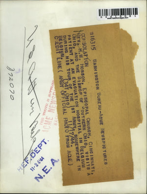 1944 Media Photo Rev. Hobson and the Bishop of Southern Ohio visits patient