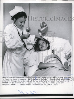 1958 Media Photo Burbank Cal. Tina Stopek age 11 & Carol Reiter in hospital