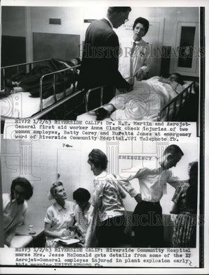 1963 Media Photo Riverside Cal Community Hospital, Mrs J McDonald & injured