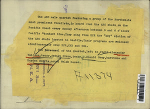 Personnel of the quartet are Alexander Wallace, Sydney Dixon, Donald Gray, and Hayden Morris.
