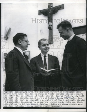 1956 Press Photo George Porter, Robert Peck, and Father Edward Jacobs in Ohio