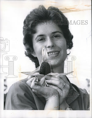 1960 Media Photo Virginia Spencer holding strawberry popcorn