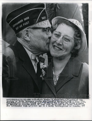 1961 Media Photo New York Thomas E Stone greeting Mrs Tsabelle Mercy