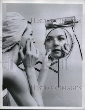 1959 Press Photo Woman uses a nirror in battle against blackheads