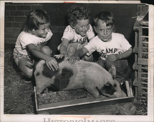 1956 Press Photo Susan Jenkins,Vicky Duff & Lester Ficzeri (L-R) with Mrs. Grunt