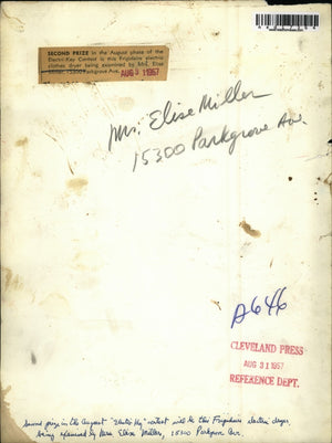 1957 Press Photo Mrs. Elise Miller Second Place Winner Of Clothes Dryer
