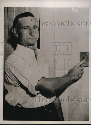 1939 Press Photo John Van Steen, 54 year old, showing how handy he is with