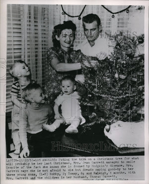 1951 Press Photo LA Calif Mr & Mrs J Garrett & kids with Xmas tree
