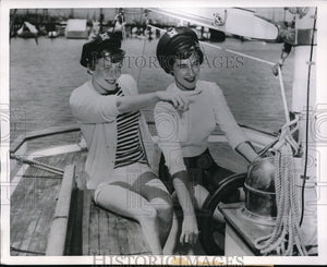 1954 Press Photo Gretchen Garroway And Elaine Miller As They Sail Richardson Bay