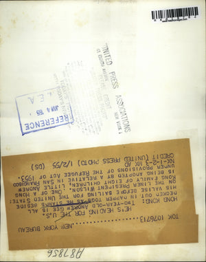 1955 Press Photo HongKong Andrew Gee age 2 heads to US for adoption
