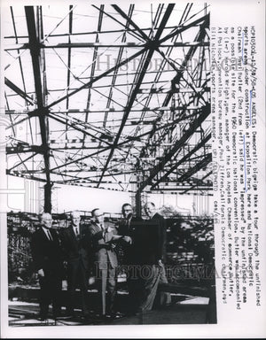 1958 Press Photo Paul Butler Takes Tour Of Unfinished Sports Arena