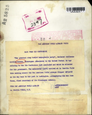 1949 Press Photo Guillermo Sevilla-Sacasa and Jose Teran at La Guardia Field