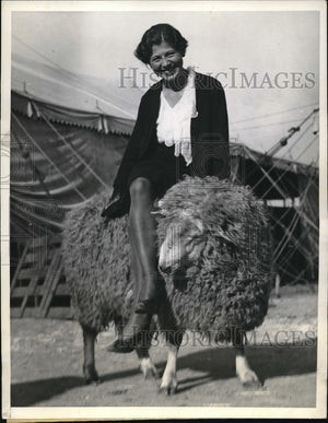 1938 Press Photo May Phillips On Ram To Be In Great Western Livestock Show