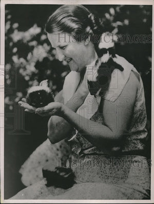 1937 Press Photo Mrs. Carol Pinkerton with 3 baby skunks