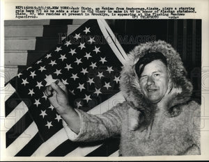 1958 Press Photo Eskimo Jack Diabo adding 49th star to Old Glory in New York