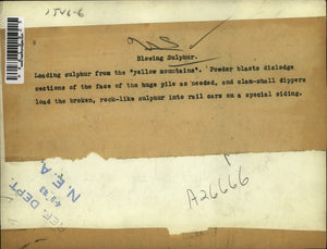 1943 Press Photo Blowing Sulphur Yellow Mountains Loading Into Rail Cars