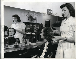 1943 Press Photo Miss Erma Kilman Gets Hair Done By Miss Dorothy Harris