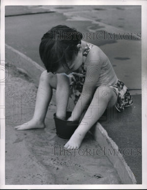 1960 Press Photo A Young Girl Playing With A Bucket In Water