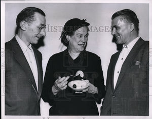 1956 Press Photo Meredith Jones Explains The Benefits Of Executive Dieting