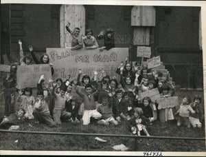 1938 Press Photo Springfield MassSchoolkids picket transfer to new building
