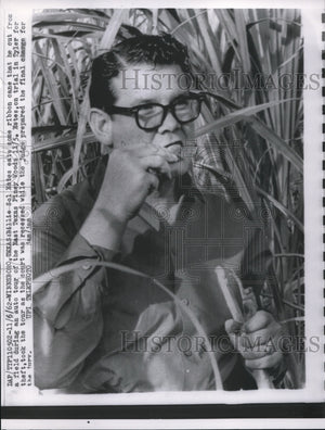 1962 Press Photo Billie Sol Estes eats ribbon cane that he cut