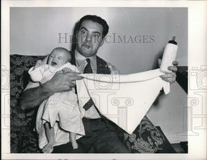 1948 Press Photo Gene Pertine Also Known As Butch Changing A Crying Baby