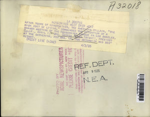 1936 Press Photo American Villain High Cost Living Los Angeles George Perry