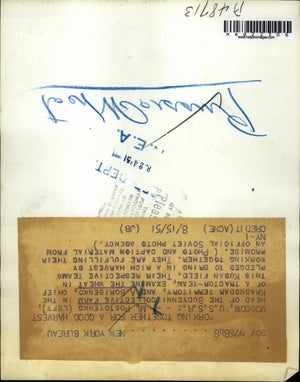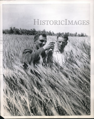 1951 Press Photo Moscow USSR Postoyenko & A Borisenko harvest grain