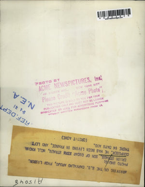 Erwin Straus has been living in France and recently arrived on the S.S. Carvalho Arujo from Lisbon.