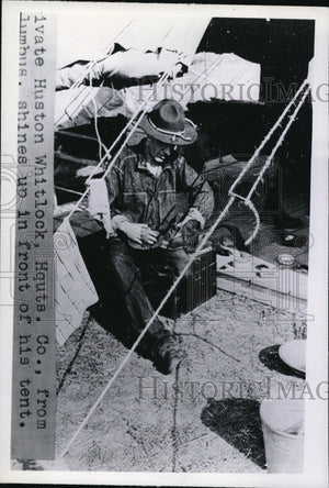 1940 Press Photo U.S. Army Private Huston Whitlock in Front of Tent