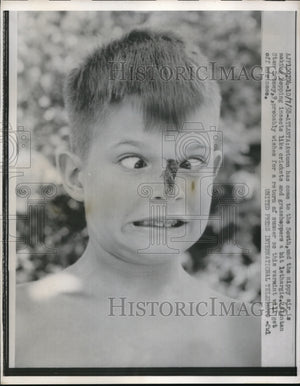 1958 Press Photo Atlanta Ga Clintan S Deney age 9 with grasshopper on his face
