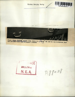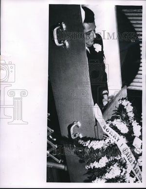 1956 Press Photo Florist James Woolman in casket as a costume at Bridey Murphy p