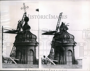 1956 Press Photo The brass ball and cross topping the San Claudio Church