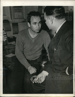 1947 Press Photo Det.Ray Blackmore question Salvodore Vallenlunga charge of Rape