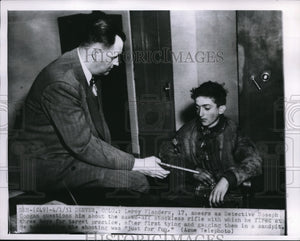 1951 Press Photo Leroy Flanders and Detective Joseph Coogan during questioning