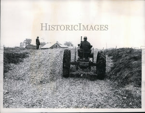 1960 Press Photo Felix Thummel Packs Lensilage Into "Silo" In Front Of Tractor